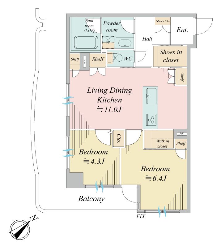 間取り 2LDK / 専有面積 55.2m²